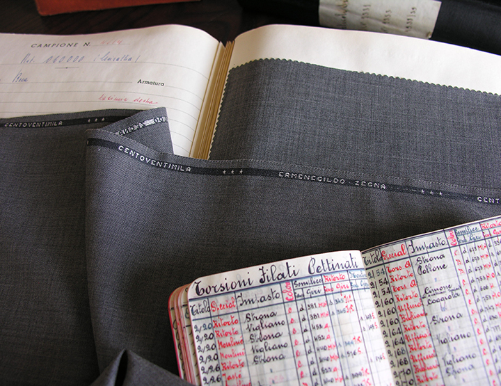 Textile samples data sheet, Zegna’s “compass” for unexplored territory