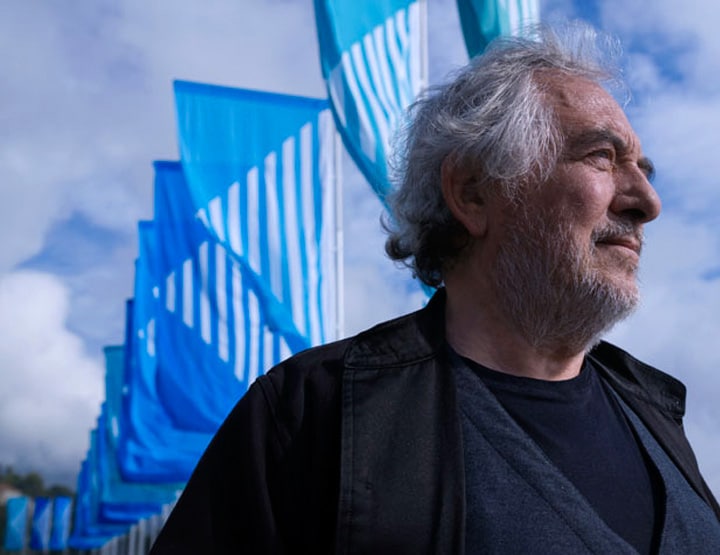 Con “Le banderuole colorate, lavoro in situ, 2007, Trivero”, l’artista incornicia il perimetro delle terrazze panoramiche del Lanificio Zegna con un arcobaleno di 126 bandiere, fluttuante tra verde e azzurro, in base a una sequenza di sette tonalità della scala cromatica Pantone.